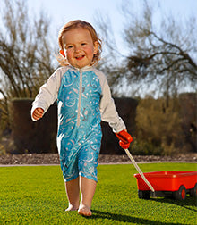 Protect your little swimmer from the sun with baby sun protection swimsuits from UV Skinz®. Specializing in baby swimwear, we all know that playing in the sun is supposed to be fun, and nothing is less fun than your little one getting a sunburn!