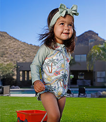 We also have a wide variety of toddler swimsuits with UV protection to keep your kid sun-safe through all of life's adventures. While your toddler can wear sunscreen at this time in his/her life, why not dress him/her in UPF 50+ swimwear too to have peace of mind whenever he/she's outside?