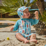 Half length front zipper closure makes romper a breeze to throw on and take off, even when wet. Diaper changes have never been easier. - Raglan Cut Sleeves