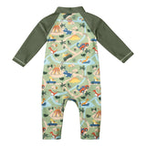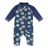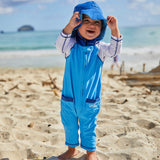 Full front zipper closure makes suit a breeze to throw on and take off, even when wet. Diaper changes have never been easier. - Functional Front Pockets