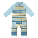 Full front zipper closure makes suit a breeze to throw on and take off, even when wet. Diaper changes have never been easier. - Functional Front Pockets