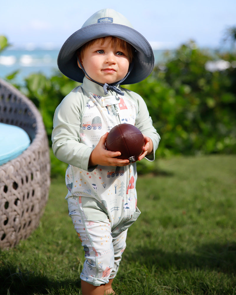 Imagine having peace of mind at the beach knowing your little boy is protected from the sun with UPF swimwear. Our baby boy's swimsuit offers best-in-class sun protection with a UPF 50+ rating to keep him sunburn free. This boy’s UV one-piece swimsuit offers 4-way stretch buttery soft fabric to keep him comfortable on the beach and fuss free.