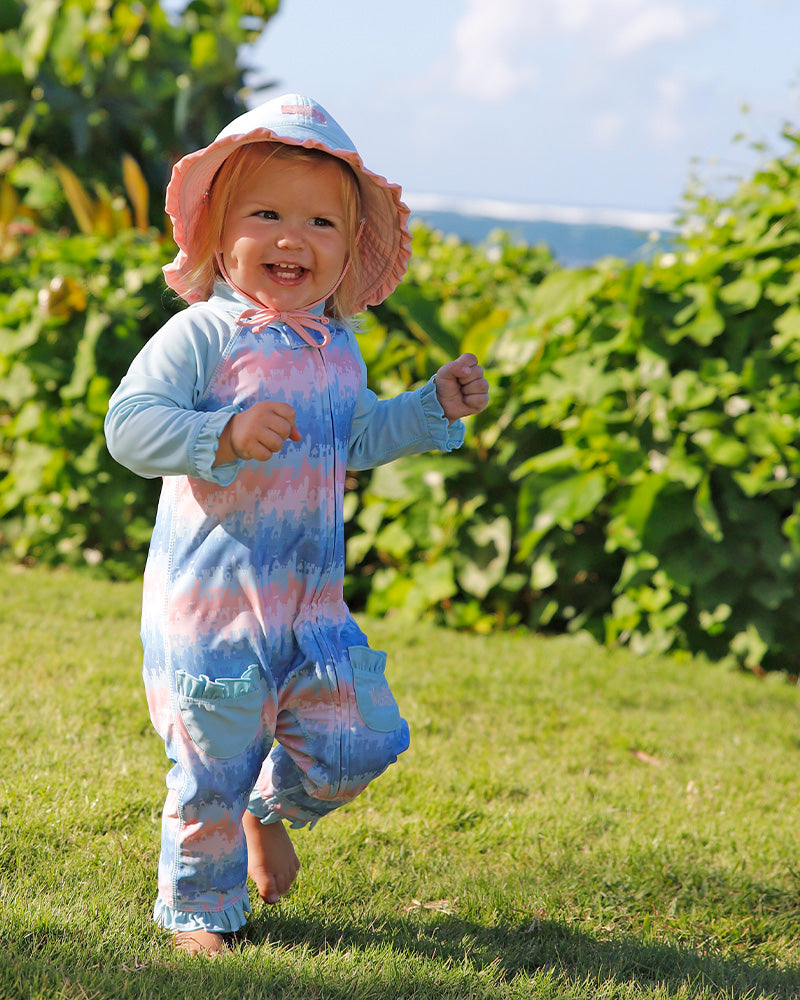 For sun protective swimsuits for your baby girl that are both adorable and comfortable, you can’t go wrong with our baby girl's swimsuit. This UPF swimsuit for babies is certified UPF 50+ and features buttery soft fabric that’s easy to care for and quick-drying. Your little girl will look so adorable in this UV one-piece swimsuit, and you’ll be grateful for the full coverage that will protect her arms and legs from the sun’s harmful rays.