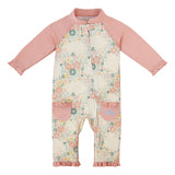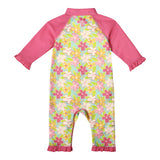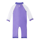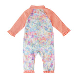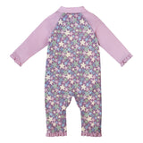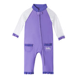 Full front zipper closure makes suit a breeze to throw on and take off, even when wet. Diaper changes have never been easier. - Ruffled Hem