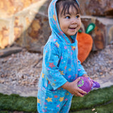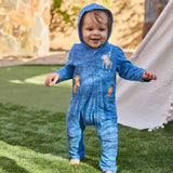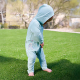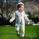 Buttery-soft with room to wiggle, your baby will be all smiles in this sun protective baby hooded romper. Certified UPF 50+ this baby UPF onesie will keep him/her sun safe from over 98% of the sun’s UV rays while looking oh-so cute. The full front zipper on this baby hooded one-piece makes diaper changes and outfit swaps on the go a breeze - even when wet.