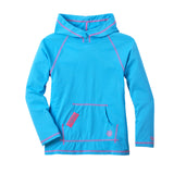 Hood provides comprehensive head and neck coverage. Integrated snap allows hood to be styled as desired. - Kangaroo Pocket