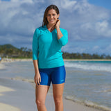 This stretch allows the garment to move with you for comfort while active in the sun. - Chlorine and Saltwater Resistant