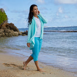A UPF 50+ rating means serious sun protection. UPF 50+ fabrics block 98% of the sun’s harmful UVA and UVB rays.