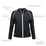 Certified to block over 98% of the sun's harmful UVA and UVB rays. - Full Front Zipper