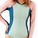 Flatlock seams throughout suit increase comfort and durability. - UV Detecting Zipper