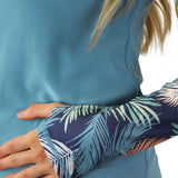 Zipper pull changes color when exposed to UV light, showing when sun rays are most intense. - Thumb Holes at End of Sleeves
