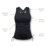 Internal shelf bra provides versatile support and comfort. - Removable Padding