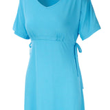 Short Cover-Up is designed to be adjustable with a drawstring empire waist for maximum comfort and style. - Easy Pull on Style
